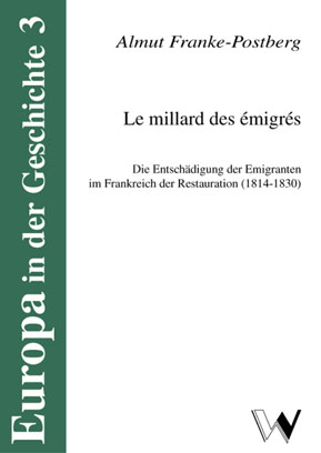 im nachnapoleonischen Zeitalter der Restauration (1814-1830) widmet sich Almut Franke-Postbergs Studie zur Emigrantenmilliarde. Während zur materiellen Abwicklung der Entschädigungszahlungen an den unter der Revolution enteigneten Adel mehrere Untersuchungen vorliegen, fehlen solche, die die heftigen Auseinandersetzungen um die Emigrantenentschädigung im Hinblick auf die politische Kultur der Epoche beleuchten.